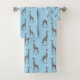 Glittery Silver Giraffe on Dreamy Blue Bath Towel Set