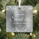 Custom glittery silver foil Sweet Sixteen square metal ornament for your daughter's milestone celebration.