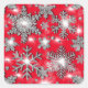 Glittery silver red festive snowflake pattern square sticker