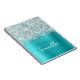 Glittery Silver Turquoise Blue Glam Script Name Notebook