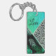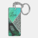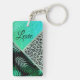 Glittery Teal Tropical Leopard Personalized Keychain
