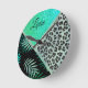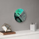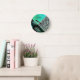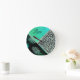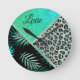 Glittery Teal Tropical Leopard Print Round Clock
