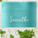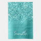 Glittery Turquoise Blue Glam Name Kitchen Towel