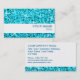 Business card with a modern design featuring stars scattered over a stylised "sequin look" pattern background in shades of blue, and blue text on a white background Please note this is a printed digital art image, it does not shine or contain real glitter or sequins.