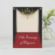 Elegant red carpet, luxurious black drapes with a beautiful ornate gold chandelier school prom invitation.
