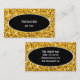 Business card template with a modern design featuring stars scattered over a stylised "sequin look" background in shades of yellow gold with a black oval edged with white and white text. Can be used as a background for your own text, images and ideas. The text can easily be changed using the template provided or click the 'Customize It' button to make further alterations. Please note this is a printed digital art image, it does not shine or contain real glitter or sequins.