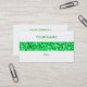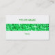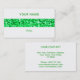Business card template with a modern design featuring stars scattered over a stylised "sequin look" pattern background in shades of green, and green text on a white background Please note this is a printed digital art image, it does not shine or contain real glitter or sequins.