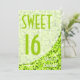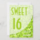 Invitation à un design moderne avec des étoiles éparpillées sur une forme stylisée "paillette look" courbée dans les tons vert citron avec "Sweet 16" "you're invite" écrit en vert et blanc. Peut être utilisé comme arrière - plan pour vos propres textes, images et idées. Le texte peut facilement être modifié à l'aide du modèle fourni ou cliquez sur le bouton "Customiser" pour effectuer d'autres modifications. Veuillez noter qu'il s'agit d'une image d'art numérique imprimée, elle ne brille pas ou ne contient pas de parties scintillant ou de paillettes réelles.
