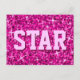 Postcard with a modern design featuring stars scattered over a stylised "sequin look" pattern background and 'STAR' in shades of pink. Can be used as a background for your own text, images and ideas. Please note this is a printed digital art image, it does not shine or contain real glitter or sequins.
