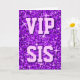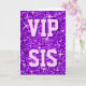 Greetings card with a modern printed design with stars scattered over a stylised "sequin look" pattern background and 'VIP SIS' written in shades of purple and lilac. A customizable design for you to personalise with your own text, images and ideas. Please note this is a printed digital art image. The product does not shine or contain real glitter or sequins.