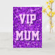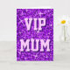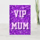 Let Mum know she's a Very Important Person! Greetings card with a modern printed design featuring stars scattered over a stylised "sequin look" pattern background in shades of purple and 'VIP MUM' written in lilac. Can be used as a background for your own text, images and ideas. Please note this is a printed digital art image, it does not shine or contain real glitter or sequins.