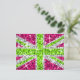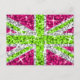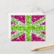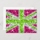 Fly the UK flag with a twst! A fun Union Jack design featuring stars scattered over a stylised "sequin look" pattern background. Postcard with a lime green, white, silver grey and pink customizable design for you to personalise with your own text, pictures and ideas. Please note this is a printed digital art image, it does not shine or contain real glitter or sequins.