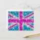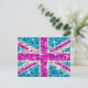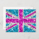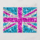 Fly the UK flag with a twst! A fun Union Jack design featuring stars scattered over a stylised "sequin look" pattern background. Postcard with a pink, white, silver grey and blue customizable design for you to personalise with your own text, pictures and ideas. Please note this is a printed digital art image. The product does not shine or contain real glitter or sequins.
