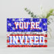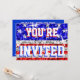Stars and stripes design inspired by shining sequins. Invitation with a red, white, silver grey and blue customizable design for you to personalise with your own text, pictures and ideas. Image created using digital techniques by Jess Perry. Does not contain real glitter or sequins.
