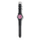 Watch with a modern printed design featuring stars scattered over a stylised "sequin look" zebra stripe pattern background. A customizable design in shades of pink and silver grey for you to personalise with your own text, pictures and ideas. Please note this is a printed digital art image, it does not shine or contain real glitter or sequins.