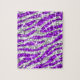 Jigsaw puzzle with a modern design featuring stars scattered over a stylised "sequin look" zebra stripe pattern background. A customizable design in shades of purple and silver grey for you to personalise with your own text, pictures and ideas. Please note this is a printed digital art image, it does not shine or contain real glitter or sequins.