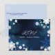 Sparkling faux white fabric flowers + elegant flourish swirls and snowflakes with a rustic textured background in shades of navy blue illustrated on custom Wedding Response Postcards. Beautiful & glitzy wedding essentials your wedding guests will enjoy! All the sample text can be fully customized with your own wording. Feel free to change the colours, sizes & fonts of the text as well. ((You can find the matching wedding essentials & favours in this store, Bridal Heaven. Contact ujean4791@gmail.com for custom work and/or matching wedding stationery.))