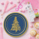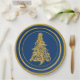 Glitzy Gold Tree with Blue Background Holiday Paper Plate