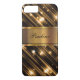 Glitzy and glamourous monogram smartphone case with sparkling lights, stripes. and gold coloured monogram emblem, all digitally printed on the cover in a graphic design that will decorate your cellphone in a style as unique as you are.