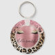 Glitzy Pink Glitter Gold Eyelashes Leopard Keychain
