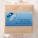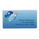 A professional address label with a blue globe and gold arrow circling it on blue background. Coordinating items available.