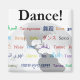 This multicolored design features the word "DANCE" in languages from around the world superimposed over a translucent globe showing all the continents of Earth in shades of grey. Featuring text from every continent, it proves that dance is truly universal.