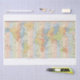 This design features a public-domain map of the world with the standard time zones for each region colour-coded. There are twenty-four time zones displayed, with non-standard half-hour time zones also listed. The map shows all of the world's major countries: it shows the continents of Asia, Africa, North America, South America, Europe and Australia. The time zone of Universal Time Coordinated (UTC) is displayed in the centre of the map, while earlier time zones are shown to the left and later time zones are shown to the right.