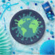This design features an image of a green virus in the shape of the planet Earth, which is intended to symbolize the global reach of pandemic infections such as those caused by COVID-19, dangerous strains of the flu or other organisms (such as viruses, fungi and bacteria) that can harm human health.