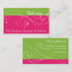 This HOT business card design from Kustom By Kris will pop in all hands that receive it. Your business is sure to get noticed with the hot pink and green background accented with polka dots, flourishes, and flower petals. Perfect for any feminine person and businesses in the spa, wedding planning, or fashion industries.