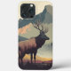 Belle scène nature avec montagnes et un wapiti de taureau aux couleurs muettes.