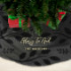 Elegant black and charcoal grey botanical leaf print tree skirt features inspirational Glory to God script and your personalized name. Shop this store for coordinating religious Christmas cards, photo stickers, and additional holiday colours!