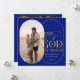 Glory to God Christian Photo Script Blue Christian Holiday Card