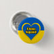 Round button with the flag of Ukraine, heart in the Ukrainian colours, and text saying "Glory to Ukraine" in Ukrainian