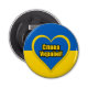 Round bottle opener with the flag of Ukraine, heart in the Ukrainian colours, and text saying "Glory to Ukraine" in Ukrainian