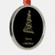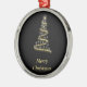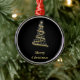 A stunning glossy gold Christmas tree shimmers brilliantly against a sleek black background, exuding elegance and holiday cheer. The words "Merry Christmas" in festive typography complete this enchanting composition, making it a perfect holiday design.