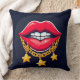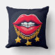 Vivid illustration featuring shiny red lips adorned with yellow stars on a blue background, evoking a sense of modern, artistic, and bold aesthetics.