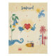 This artwork features a heart glowing with golden rays, held by cloud hands, surrounded by symbolic sea and sun details: a golden fish, whimsical flowers, and palm trees swaying in harmony.