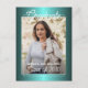 Glossy Teal Blue Green Graduation Announcement Postcard