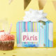 Glossy Wrapping Paper, Paris France Blue Stripe Wrapping Paper