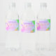 Glow Neon Tropical Pool Party swimming birthday Water Bottle Label. featuring glow neon: flamingo, glace, ice cream, pineapple, cool sun, palm, football, and stars. with a pastel gradient blue and pink.