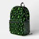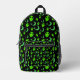 Glowing Aliens, Crescent Moon and Stars on Black Printed Backpack