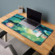 Illuminate your desk with this magical, whimsical illustration featuring a tiny, cheerful blue axolotl with adorable pink-tipped gills. The little creature is comfortably settled in a spot of glowing yellow light on a dark, deep blue pond. The scene captures a rainy night, with glistening raindrops streaking down and splashing across the surface of immense luminous green lily pads. Beautiful pink and orange lotus flowers float alongside the axolotl, enhancing the dreamy aquatic night theme. This enchanting design brings a unique, serene, and fantastical atmosphere to any workspace. This desk mat offers versatile use for various other businesses, events, or situations.
