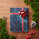 A beautiful wrapping paper with a pattern of glowing leaves in blue.