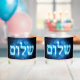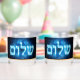 Glowing blue and white Hebrew text reading, "Shalom" (שלום - peace) superimposed on an elegant, blue, etched-look fractal image of a Star of David. Customize by adding your own text on the reverse side.