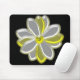 This magnificent mousepad features a digital image of a daisy flower with white and yellow coloured petals with a yellow centre. The petals look like they are glowing with a beautiful reflective quality. The flower is on a black background for maximum contrast and the result is stunning.