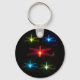 Five Glowing Dragonflies design keychain, red, blue, and green glowing dragonflies on a night time black background.