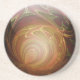 Golden glassy sphere features a distorted kaleidoscope design and gives a glass marble impression in this digital abstract.