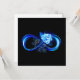 Luminous infinity symbol with glowing, beautiful, lushly blooming rose made of blue flames on black background.
