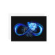Luminous infinity symbol with glowing, beautiful, lushly blooming rose made of blue flames on black background.