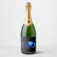 Glowing infinity with blue rose sparkling wine label